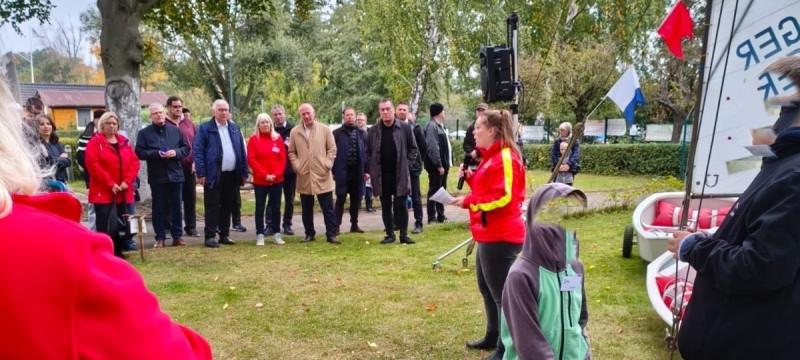 Unsere Vizepräsidentin Jessica Skrzipczyk vertrat die DLRG. Sie blickte auf die gute Zusammenarbeit und die vielen erfolgreichen Einsätze zurück. Unsere ehrenamtlichen Einsatzkräfte sorgten auch in diesem Jahr u.a in diesem Bereich für die Sicherheit am und auf dem Wasser. Besonders hob sie die Rettung von Kindern am Badestrand von Reiswerder hervor. Besonders stolz sind wir, dass die Retter eine nicht alltägliche Ehrung erhielten. Sie wurden für die Rettung mit der "Goldenen Henne" ausgezeichnet.