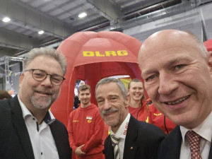 Friedhard Teuffel (Direktor LSB) (links), Thomas Härtel (Präsident LSB)( 2.v.li), Stephan Standfuß (Präsident DLRG Berlin) (rechts)